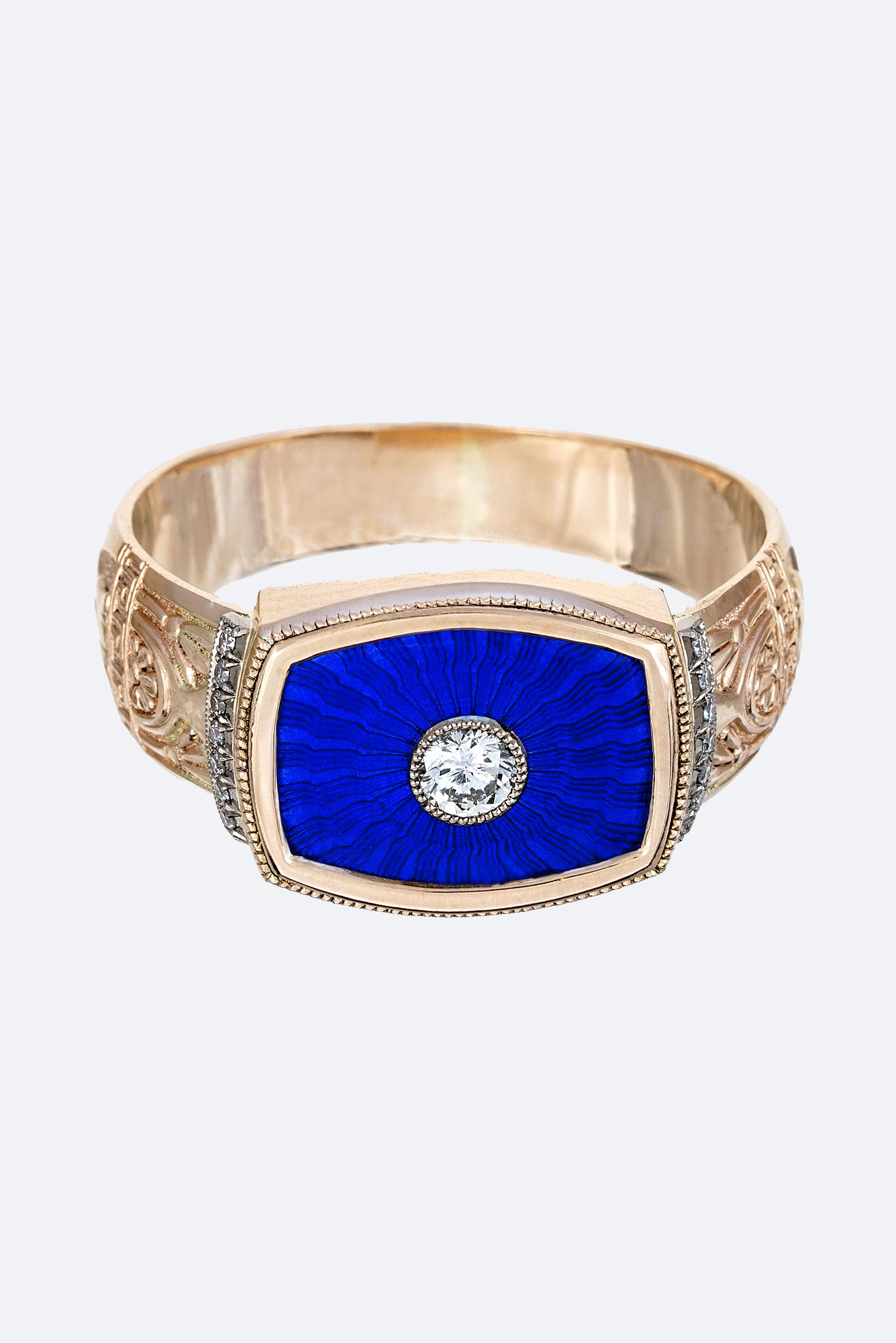 Золото 585, бриллианты, гравировка, прозрачная эмаль по гильошированному фону.