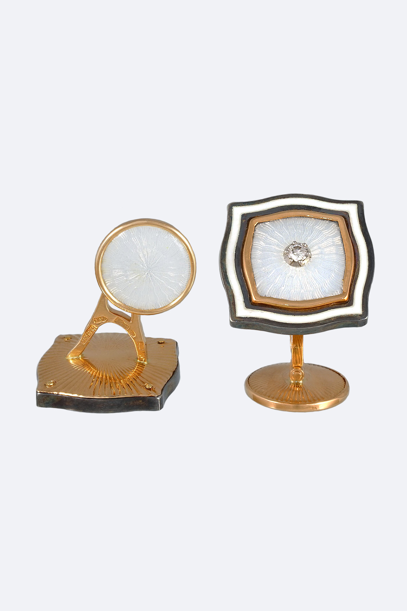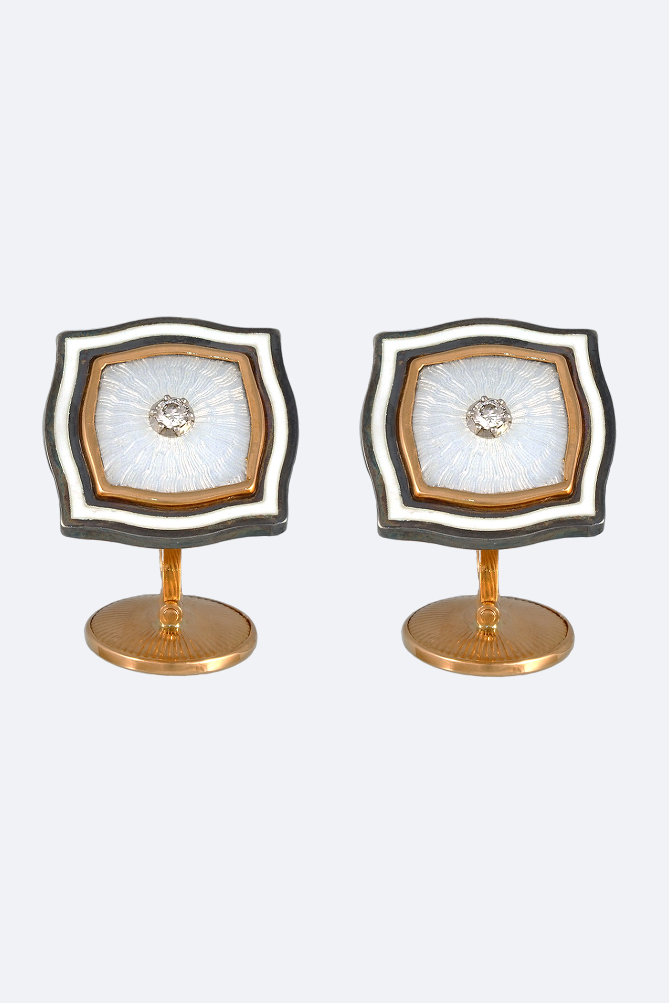 Золото 585, серебро 925, бриллианты - 0,07 карат, прозрачная эмаль по гильошированному фону.