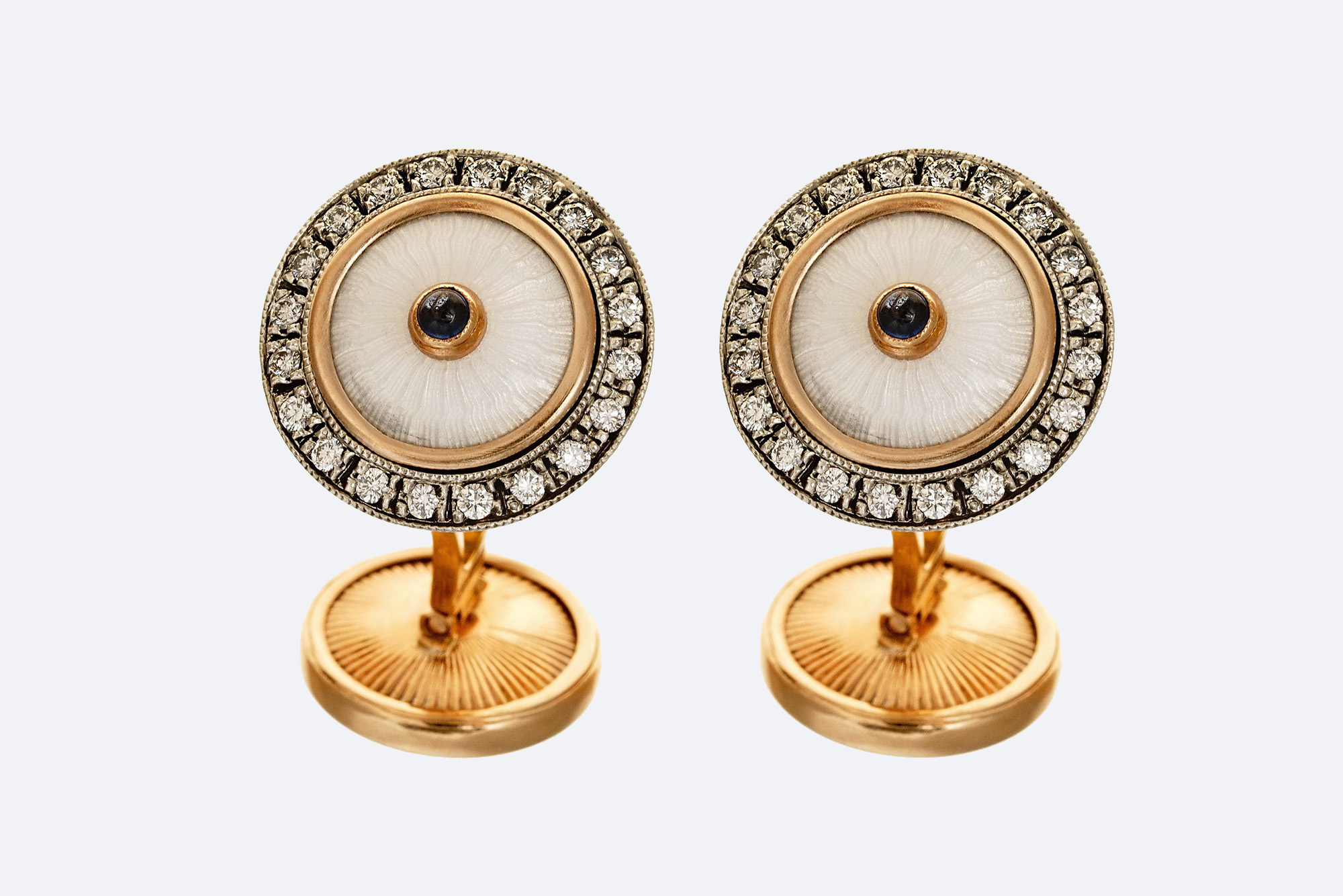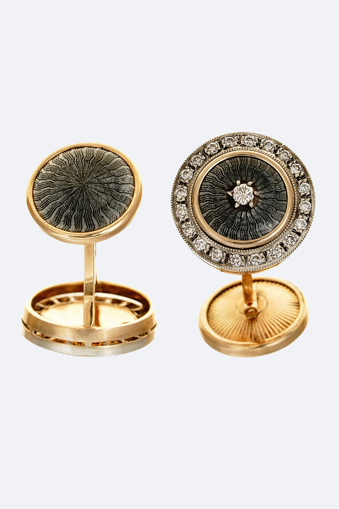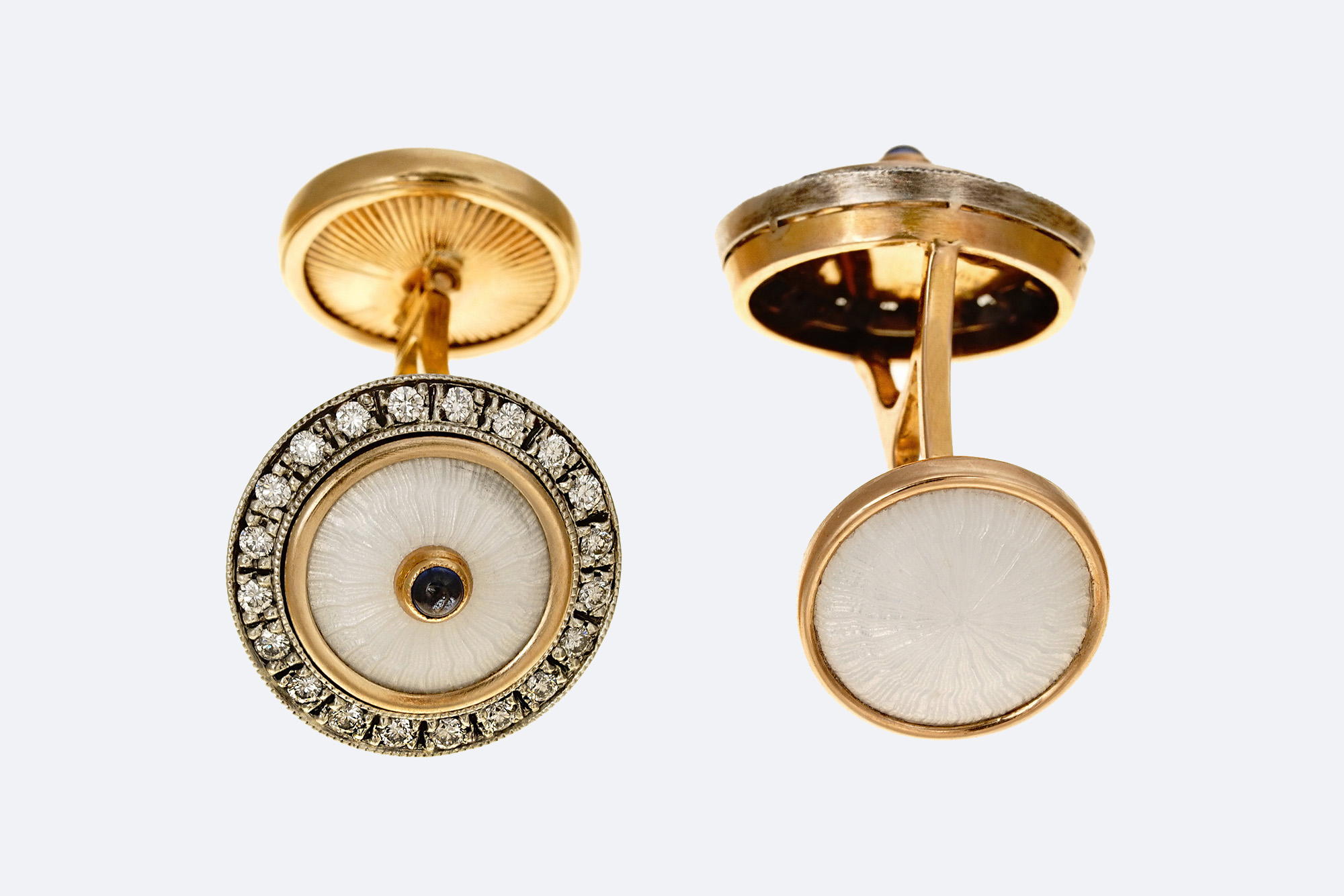 Золото 585, серебро 960, бриллианты - 0,65 карат, прозрачная эмаль по гильошированному фону.