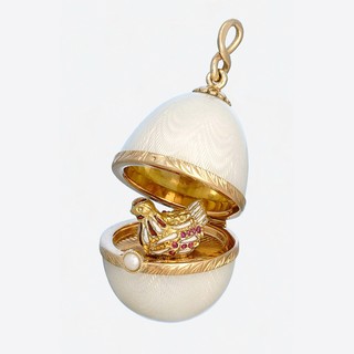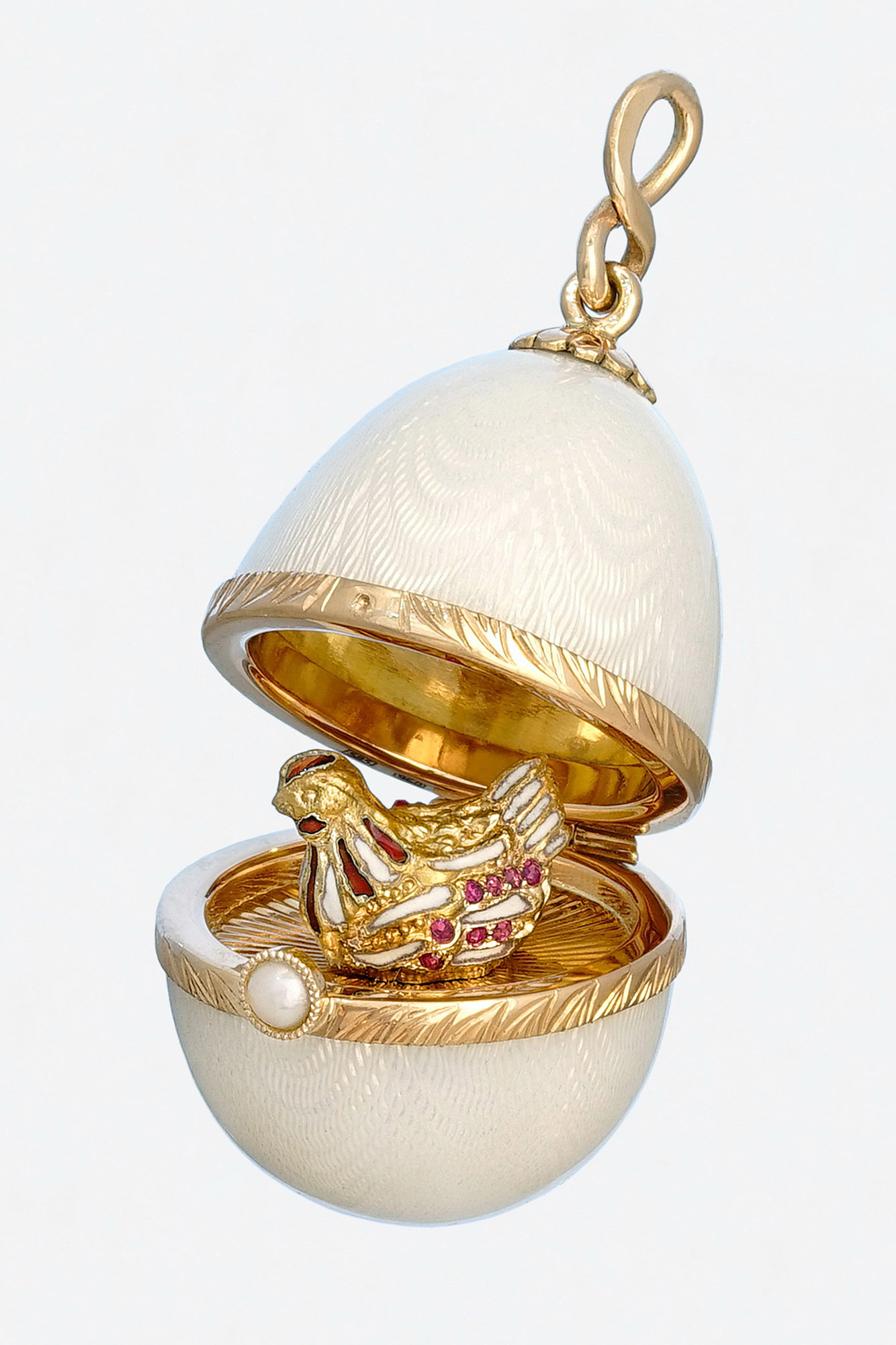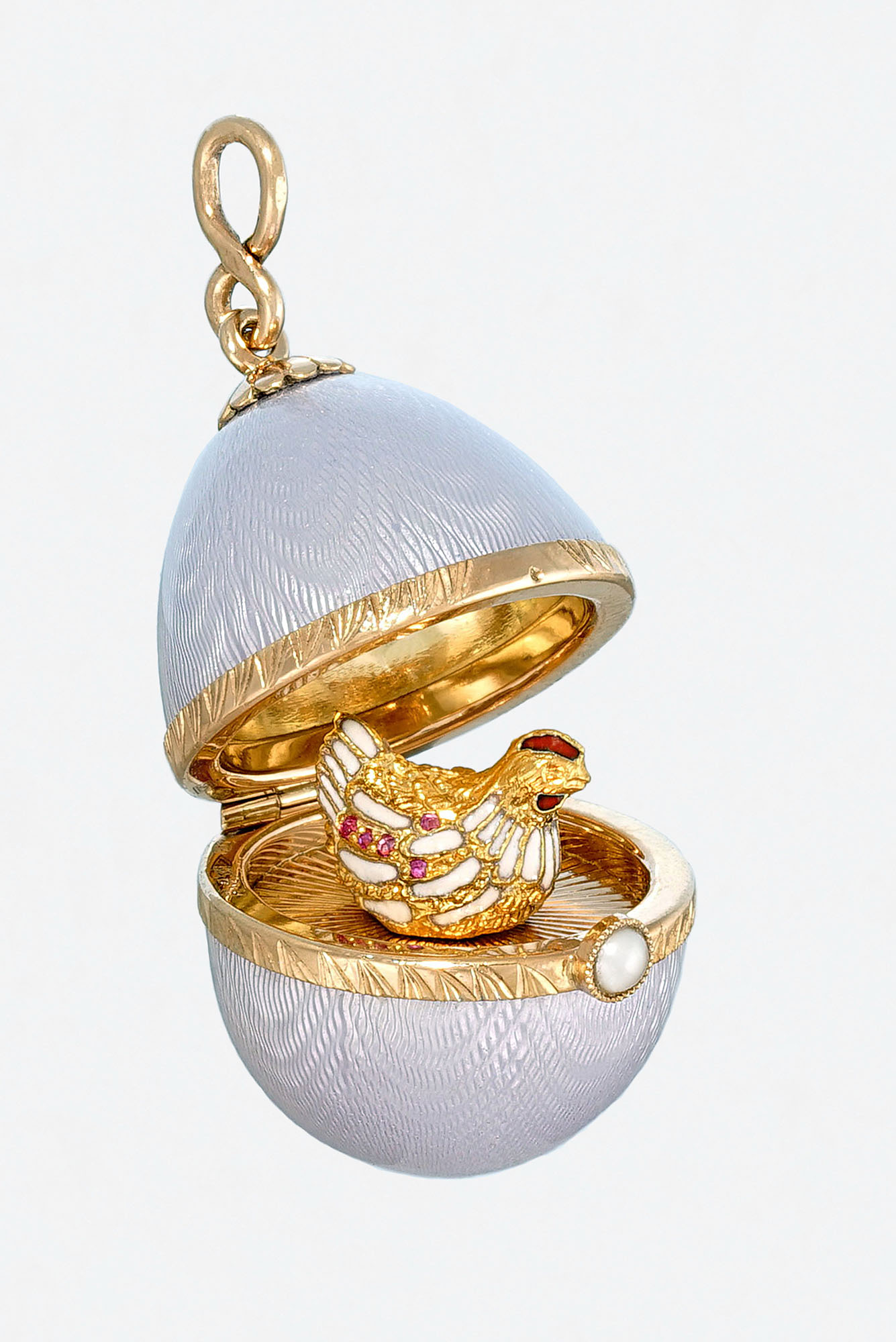 Золото 585, серебро 925, позолота, рубины, прозрачная эмаль по гильошированному фону (при изменении света с дневного на электрический, меняется цвет эмали - с бледно сиреневого на розовый)