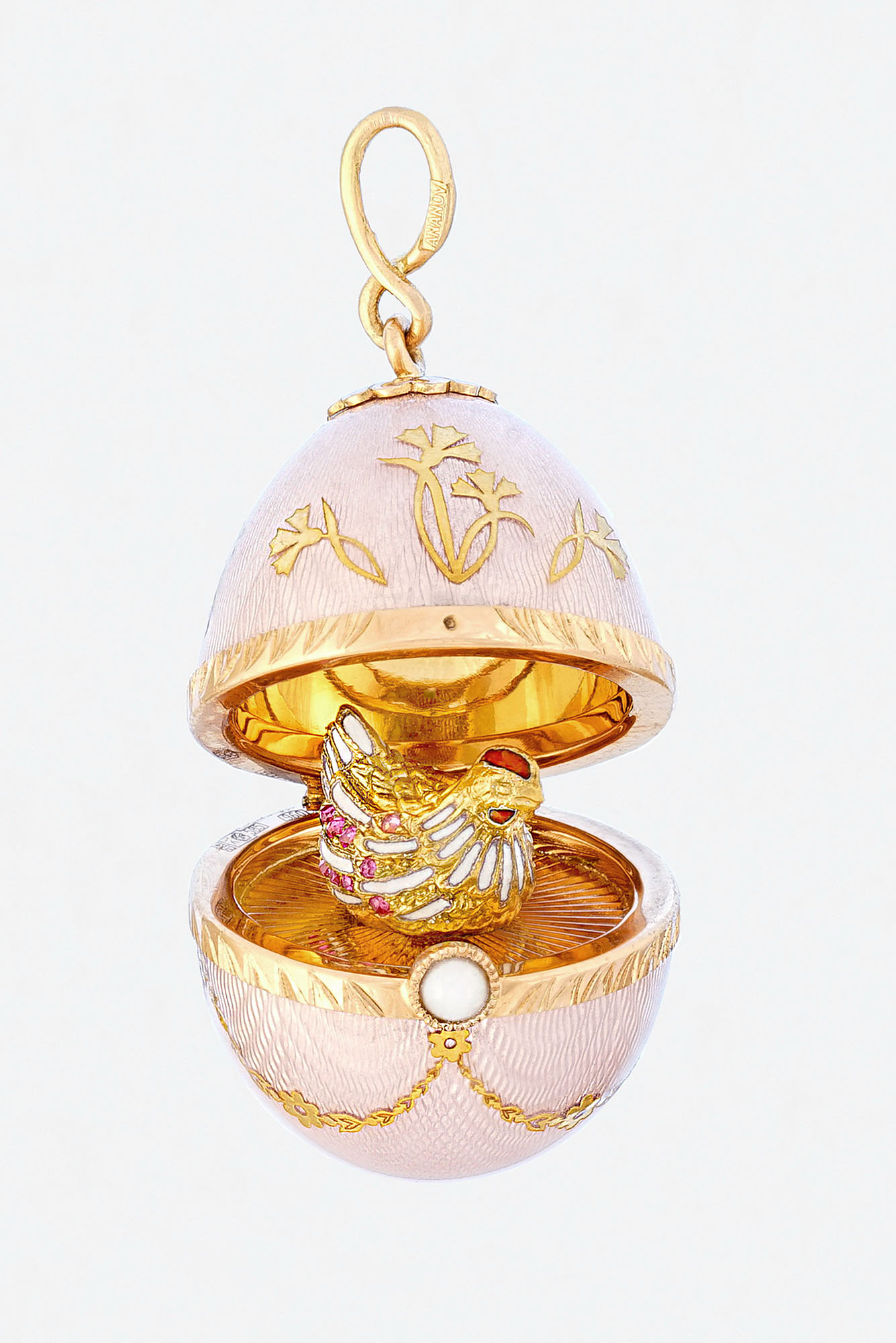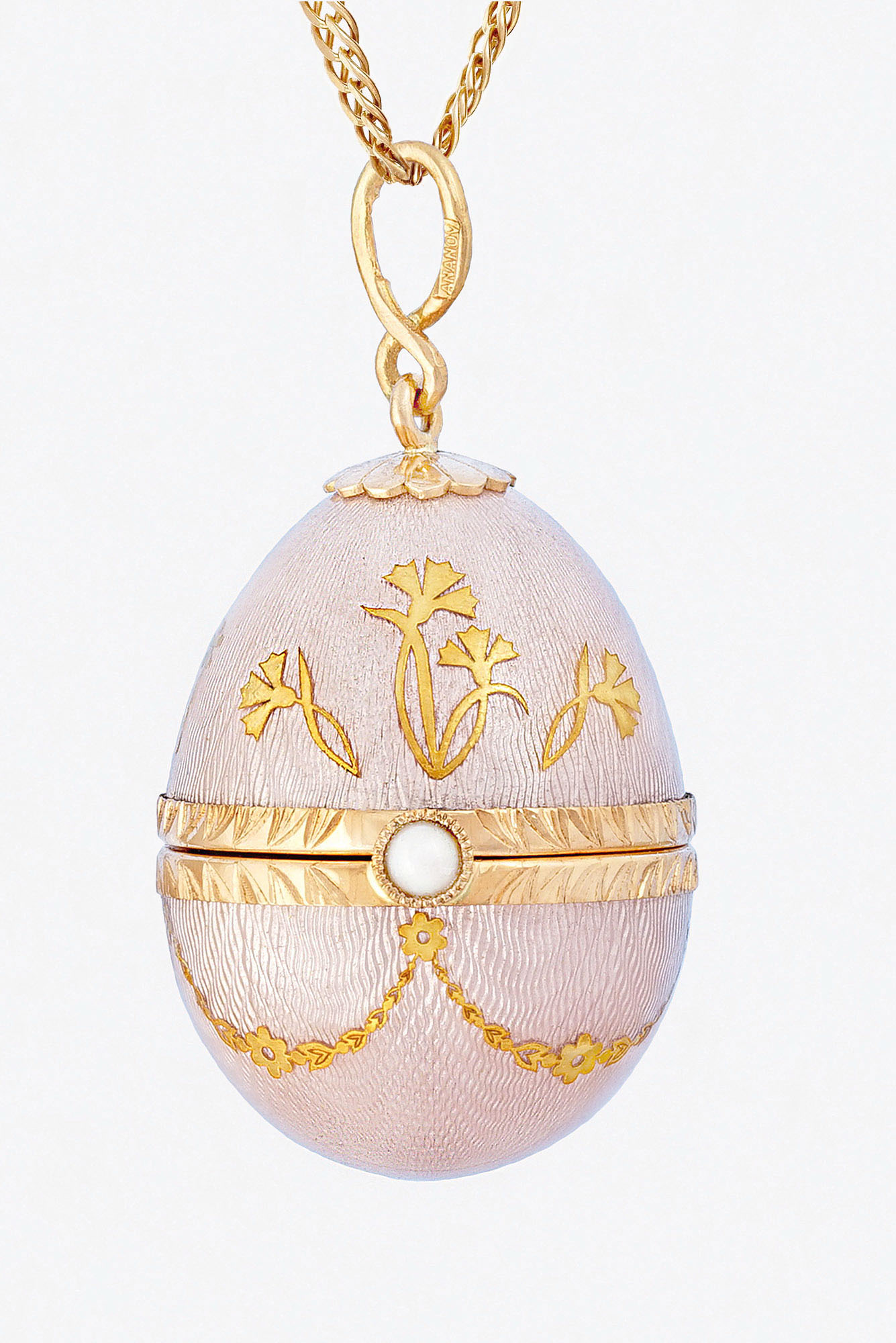 Золото 585, серебро 925, позолота, жемчуг, прозрачная эмаль по гильошированному фону
