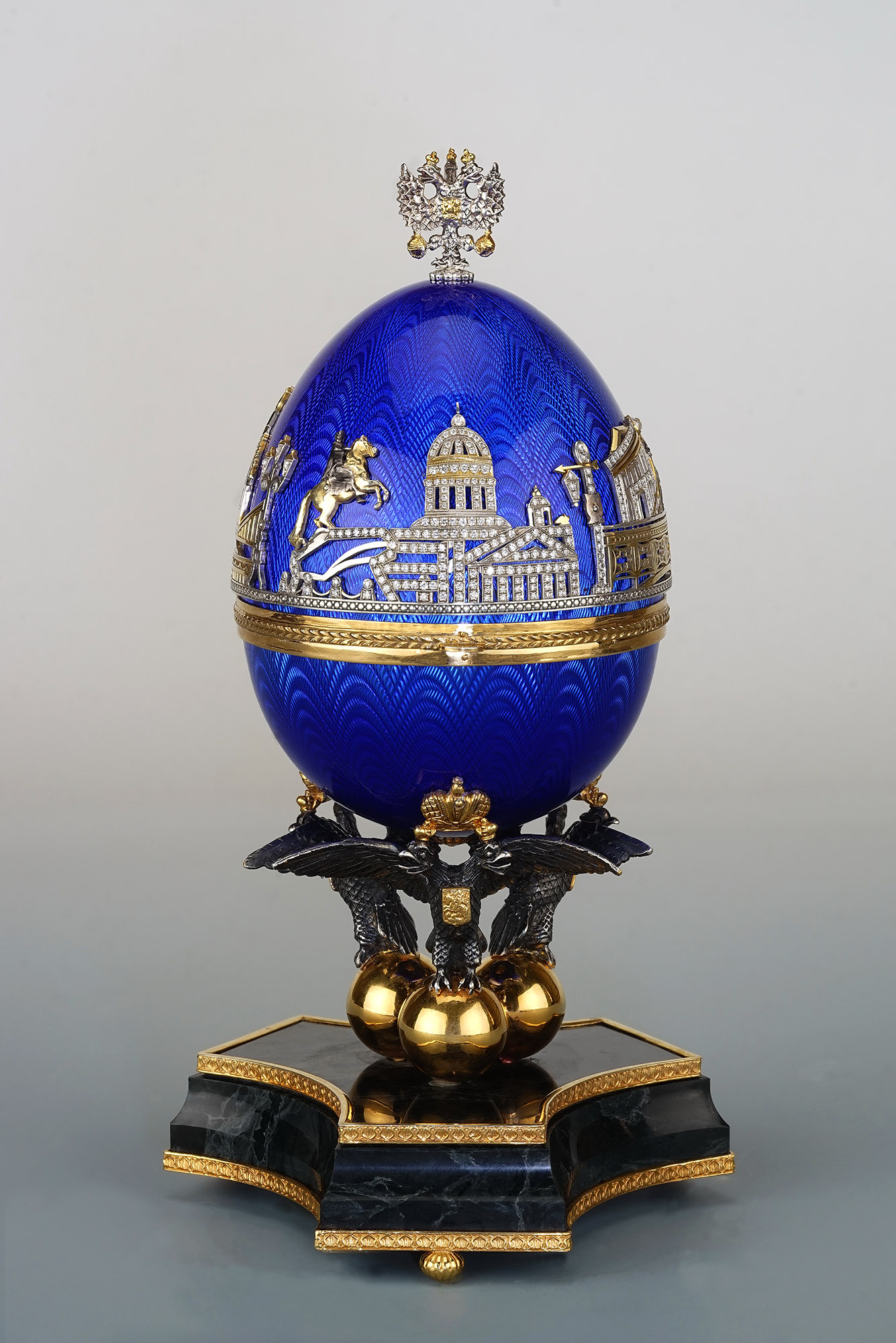 Золото, серебро, позолота, бриллианты, прозрачная эмаль по гильошированному фону, сапфиры, розы, яшма