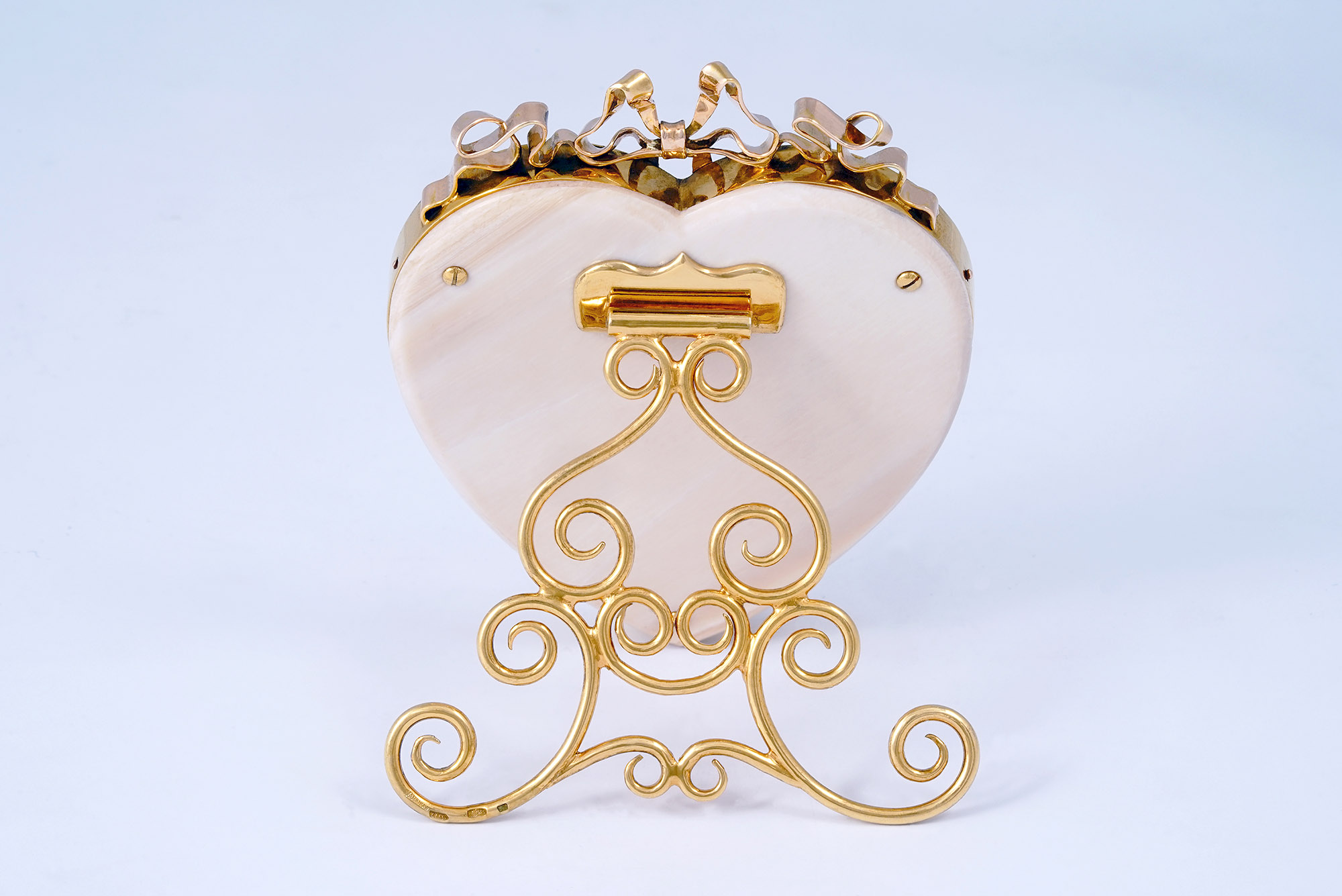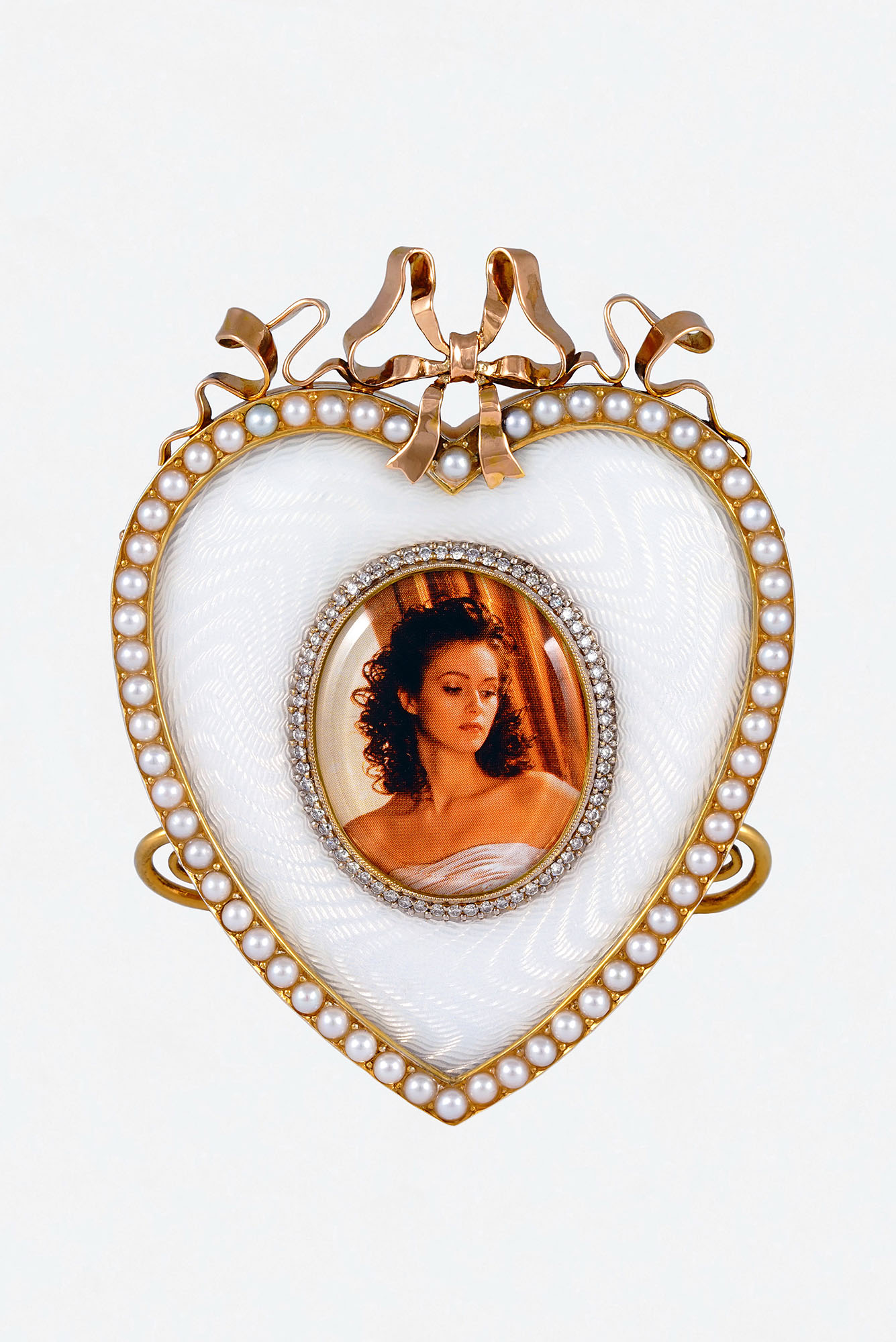 Золото, серебро, бриллианты, жемчуг, прозрачная эмаль по гильошированному фону, мамонтовая кость.