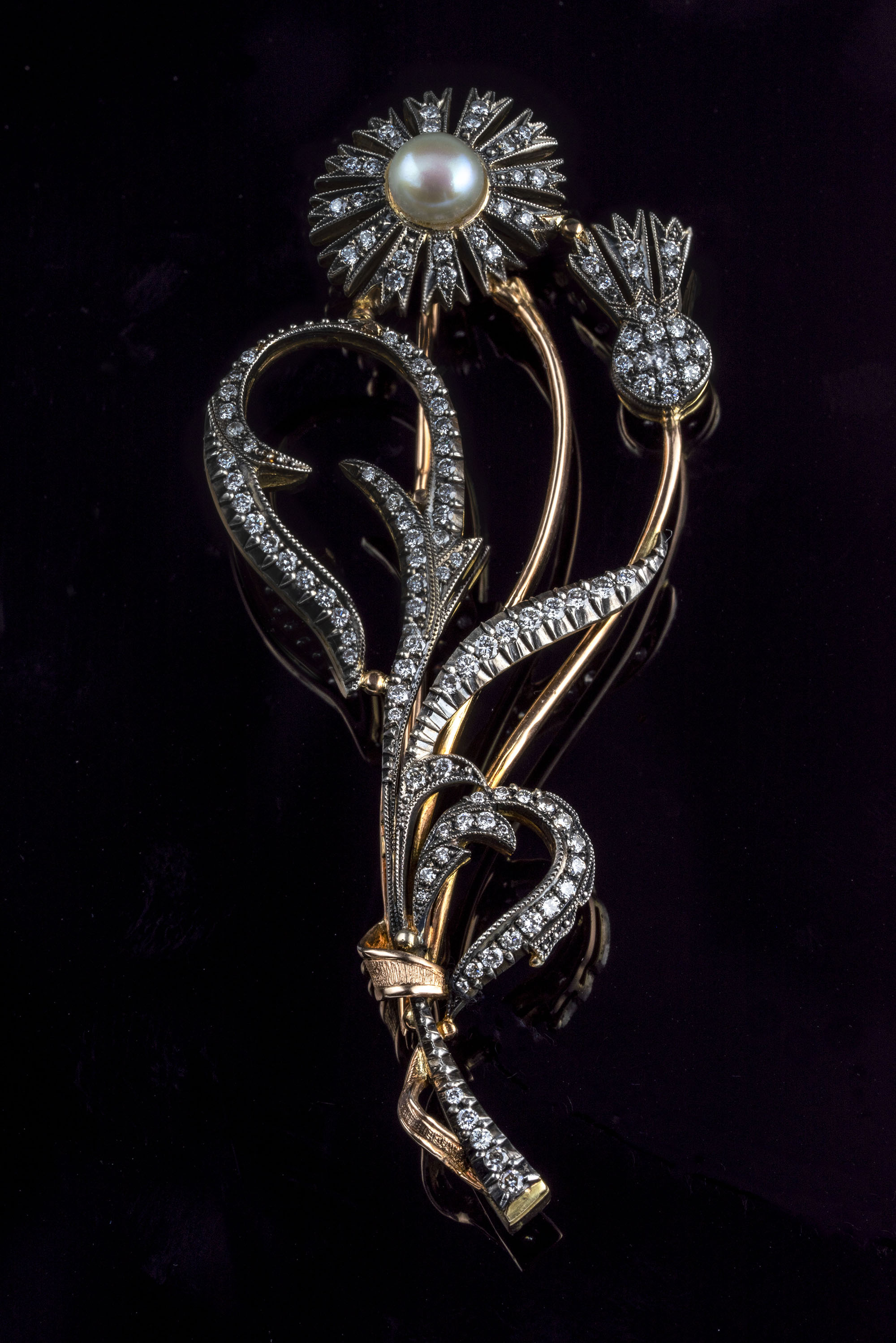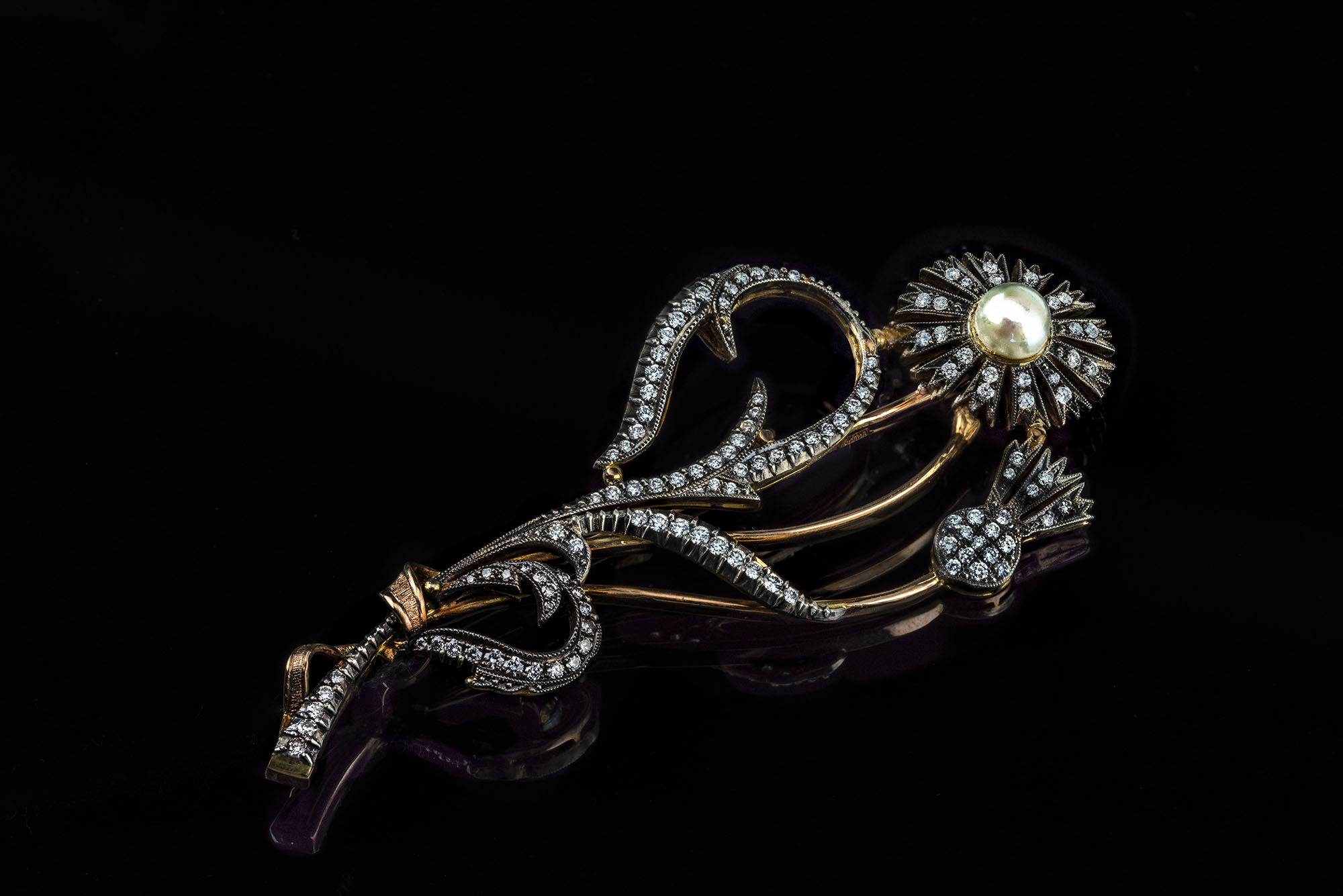 Золото 585, серебро 925, бриллианты - 0,87 карат, жемчуг