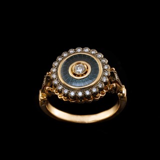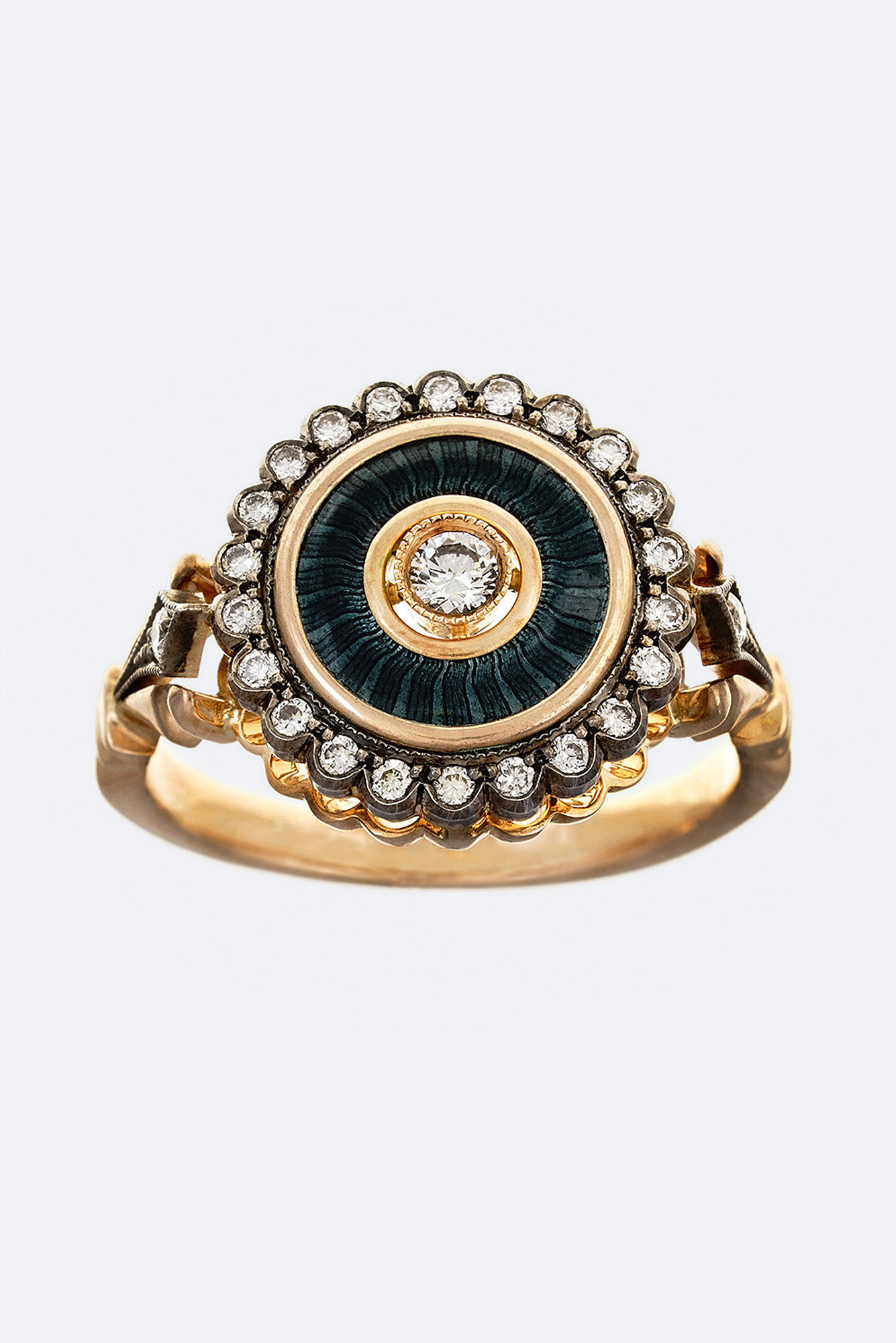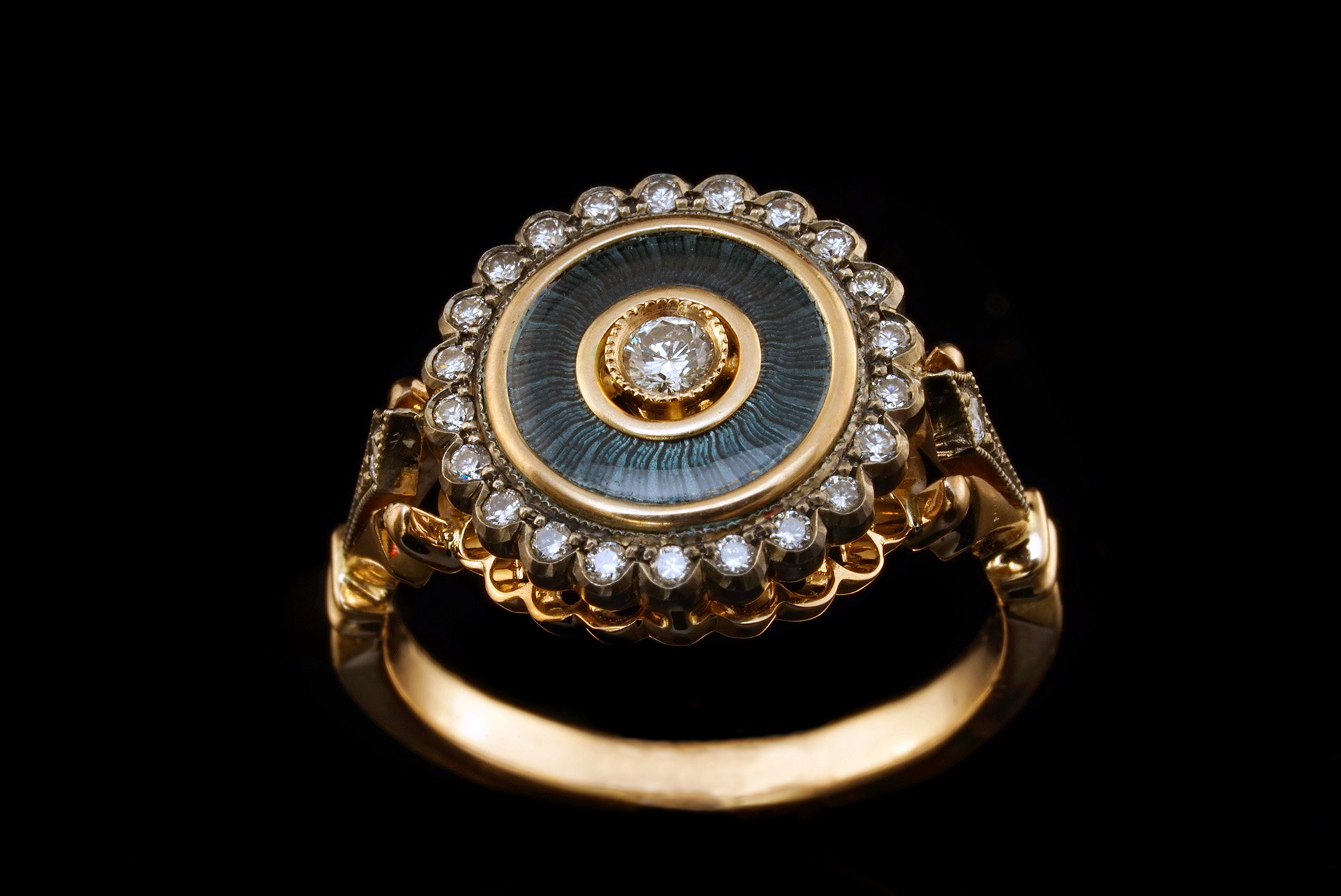 Золото 585, серебро 925, бриллианты - 0,20 карат, прозрачная эмаль по гильошированному фону.