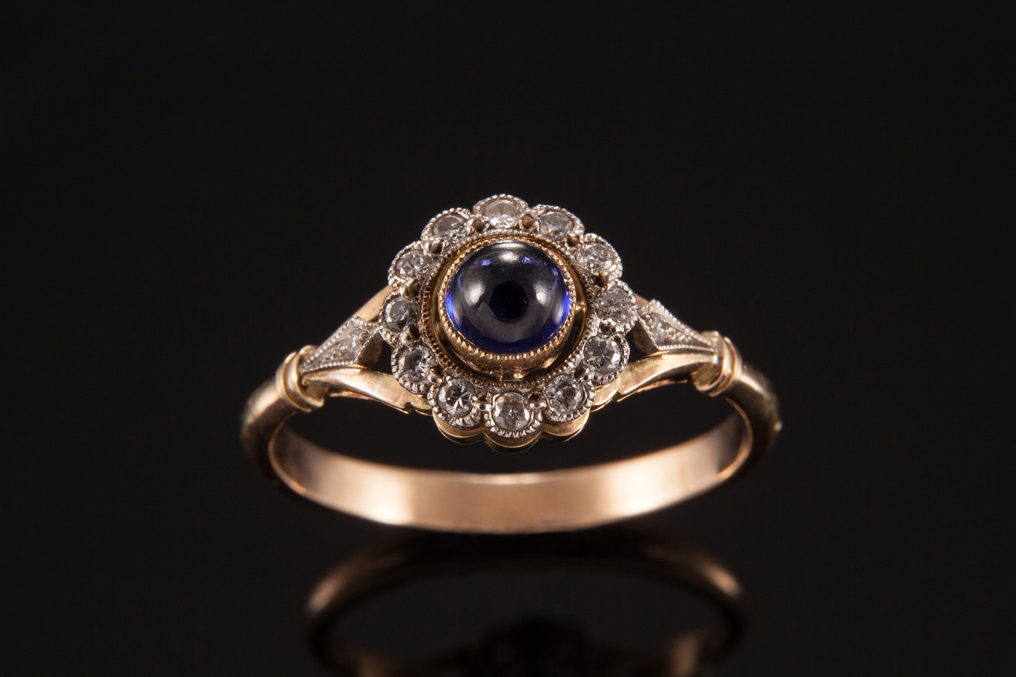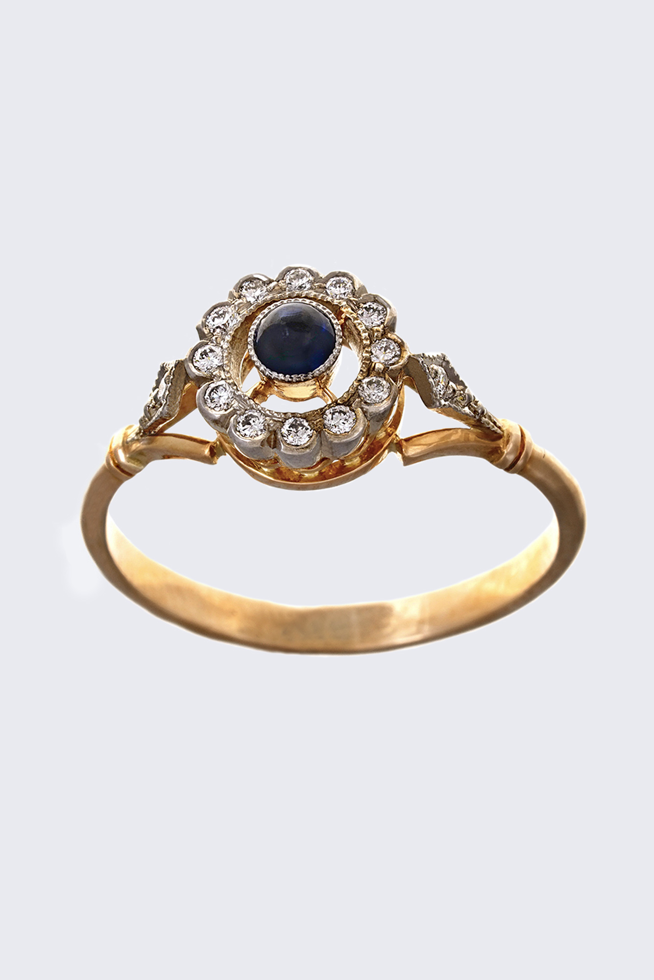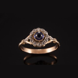Золото 585, серебро 925, бриллианты - 0,12 карат, сапфир.