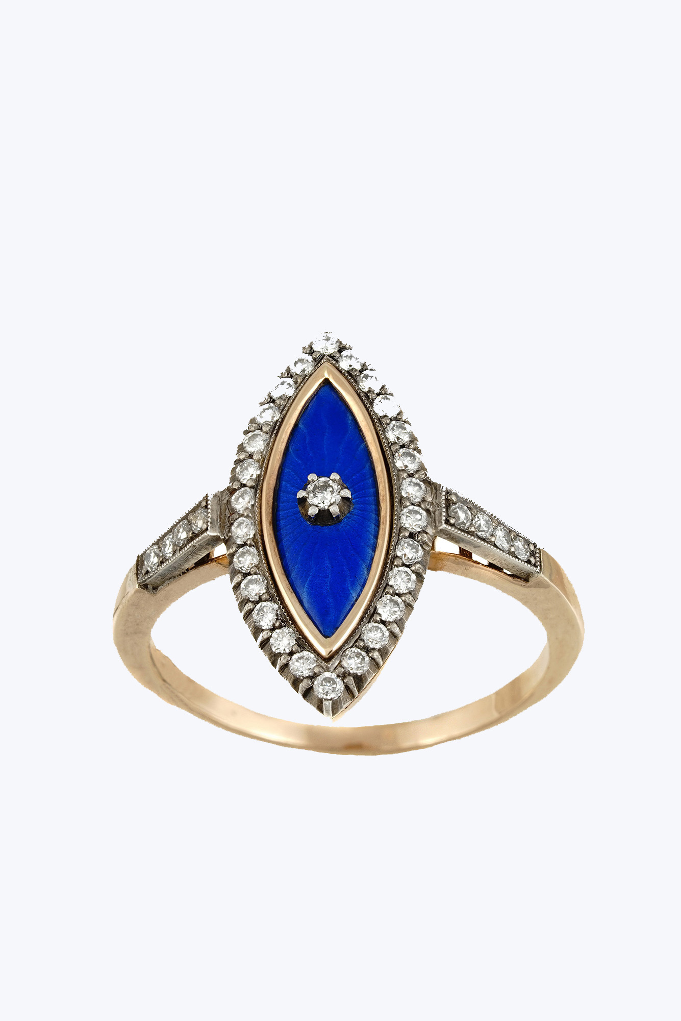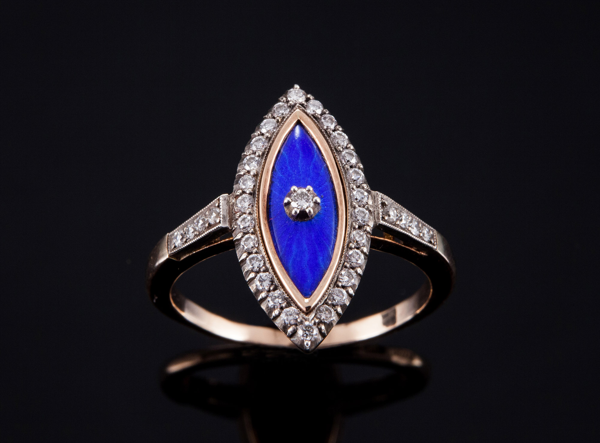 Золото 585, серебро 925, бриллианты - 0,32 карат, прозрачная эмаль по гильошированному фону