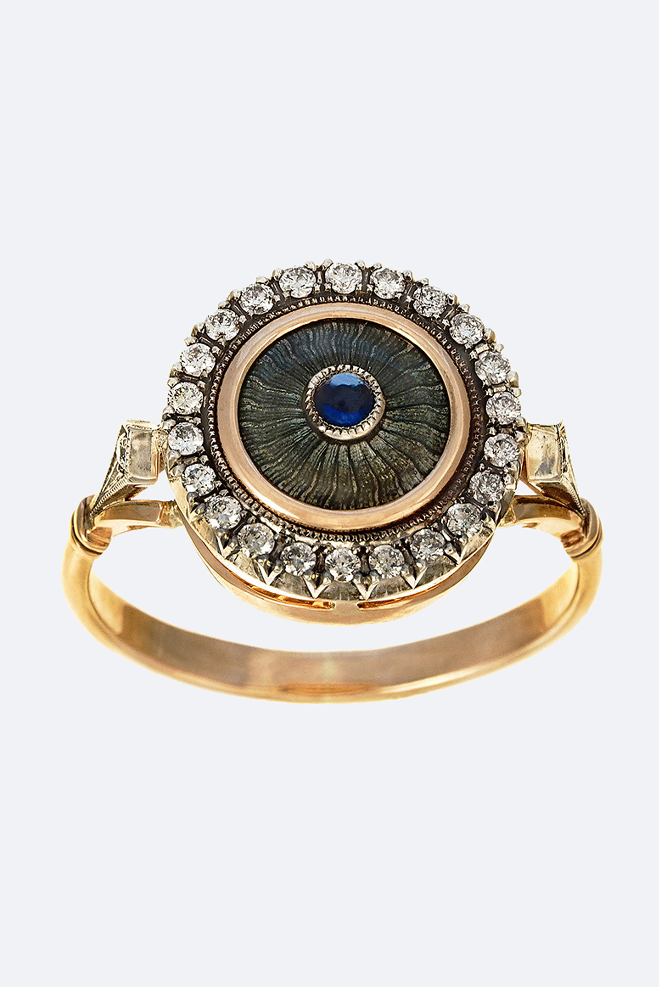 Золото 585, серебро 925, бриллианты - 0,22 карат, сапфир, эмаль.