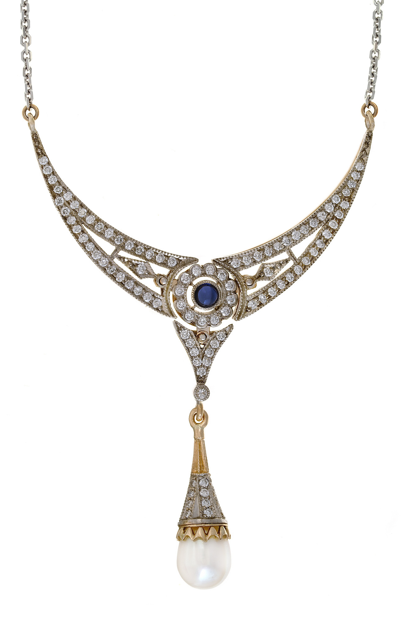 Золото 585, серебро 925, бриллианты, сапфир, жемчуг.