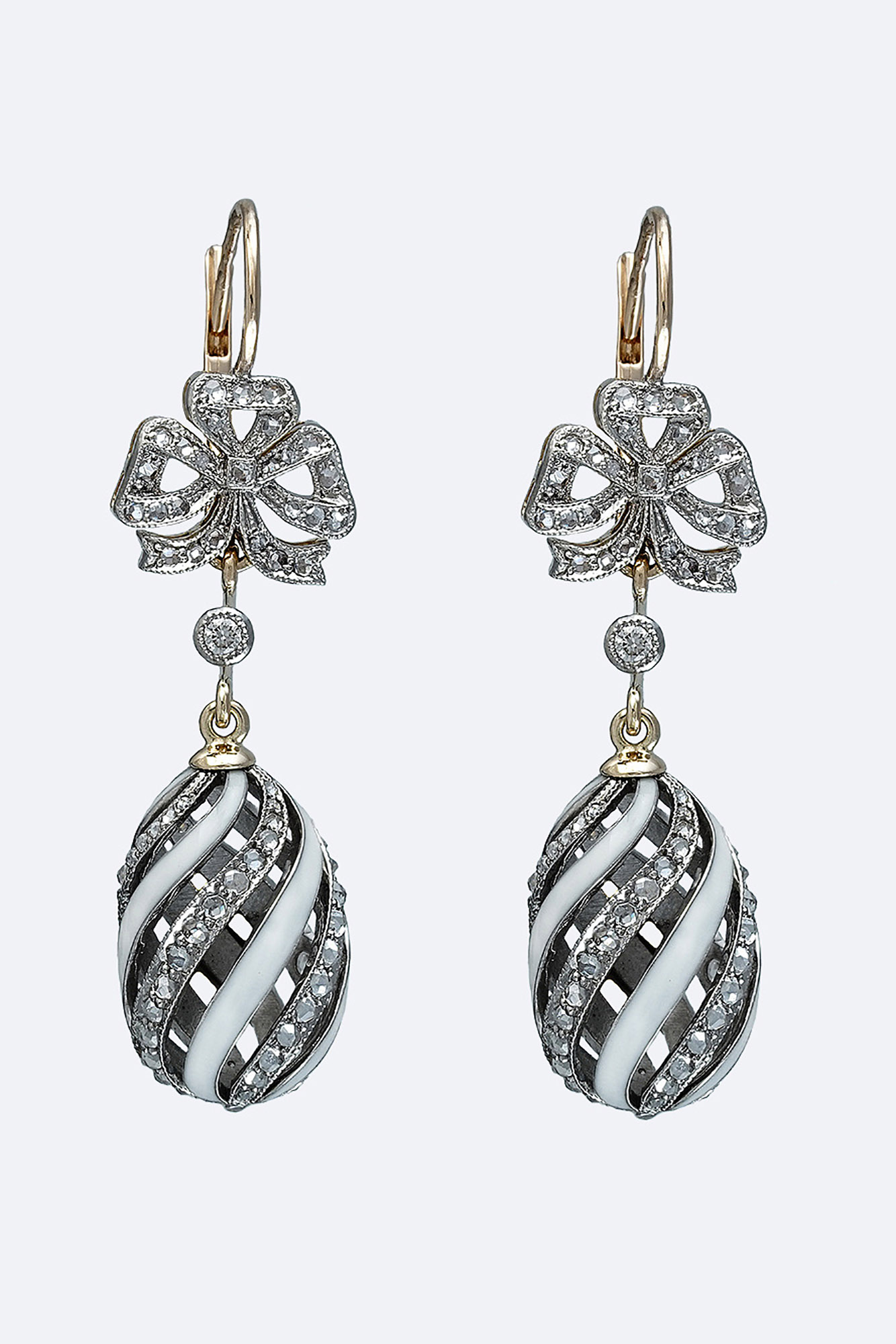 Золото 585, серебро 925, бриллианты - 0,09 карат , розы, белая эмаль