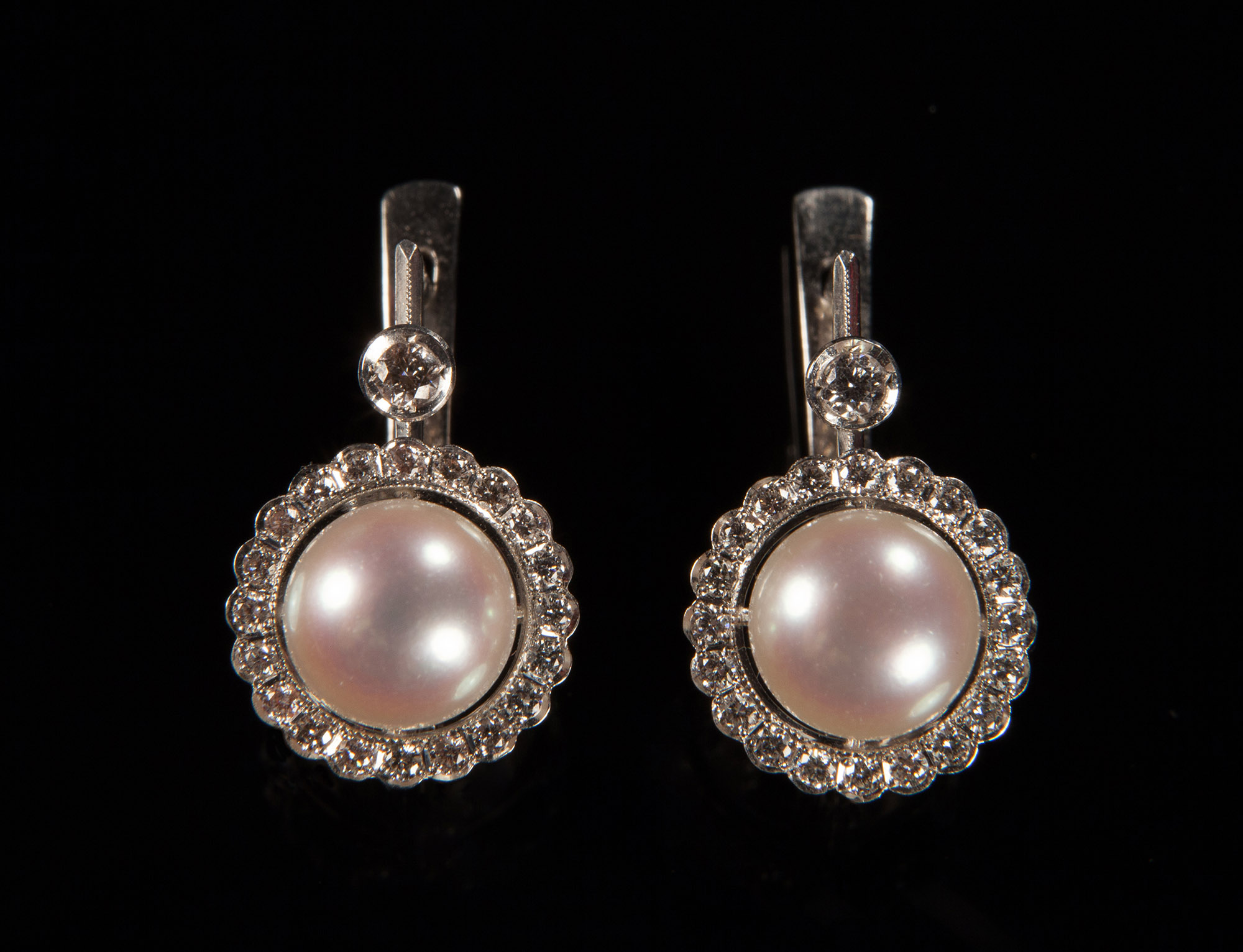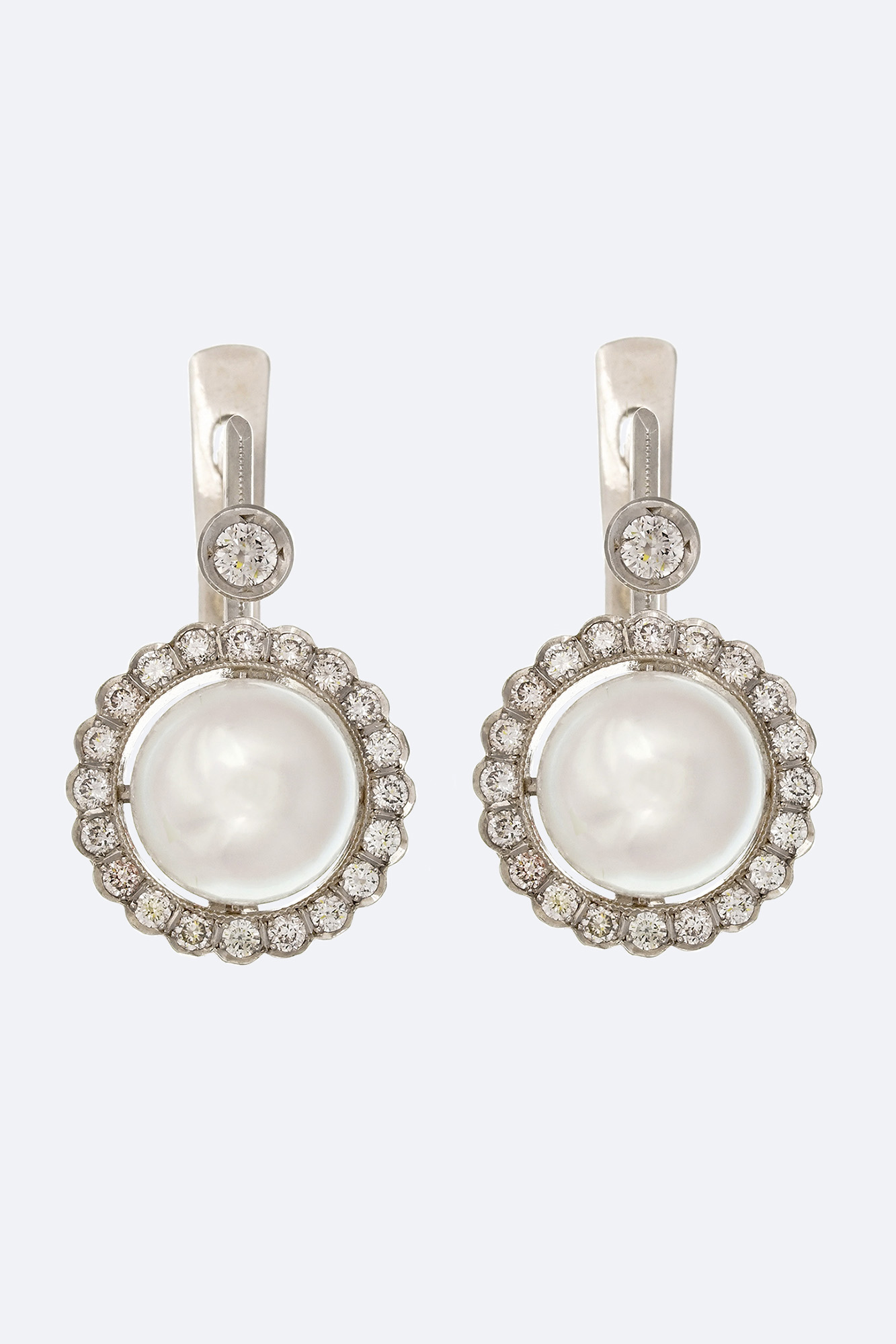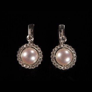Белое золото 750, бриллианты - 0,43 карат, жемчуг