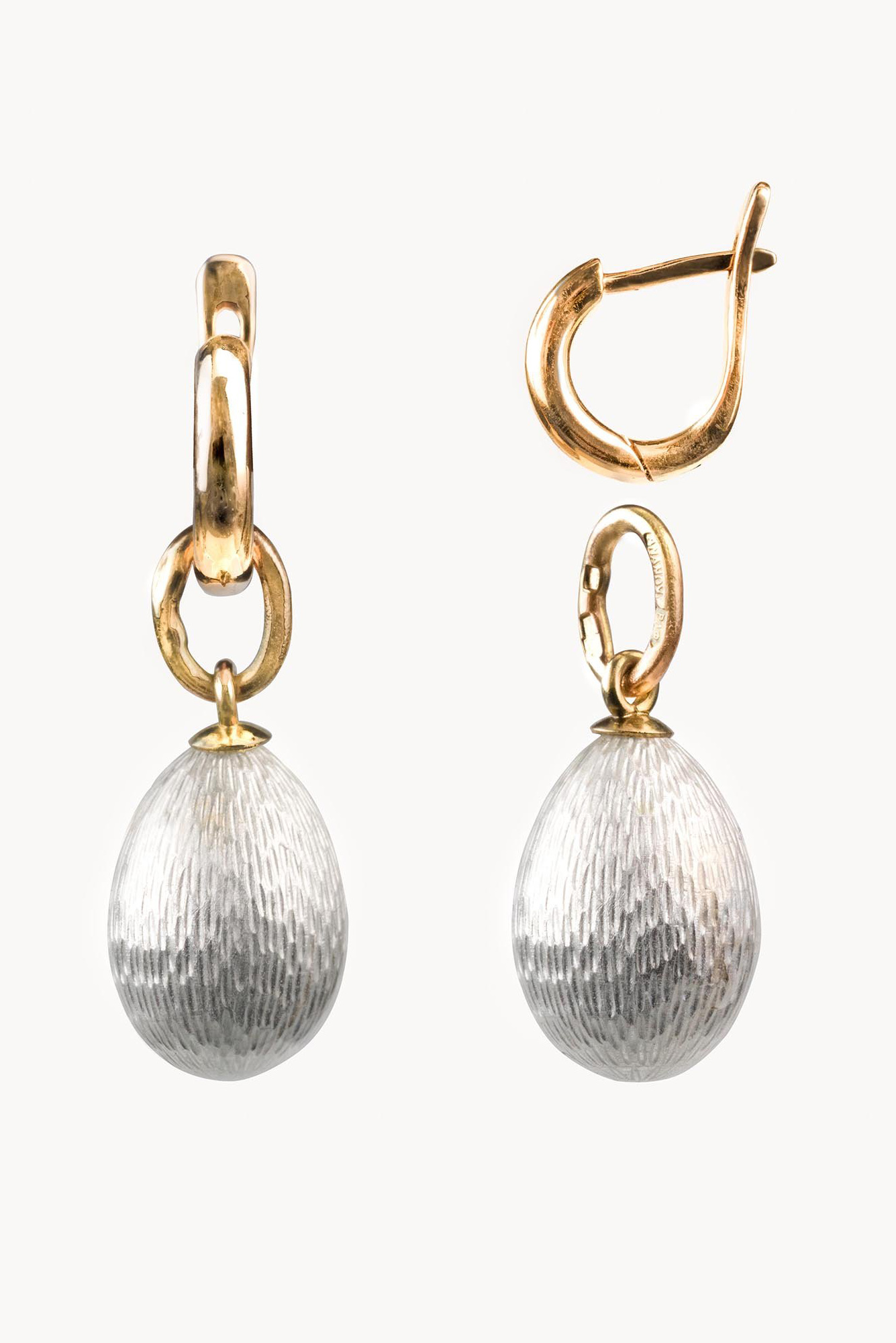 Золото 585, серебро 925, прозрачная эмаль по гильошированному фону.